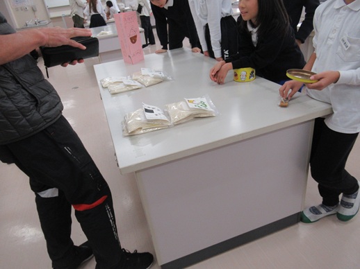 入り口で声をかける人、買いに来た先生に説明する人、お金を受け取っておつりを渡す人など役割を分担して取り組んでいました。