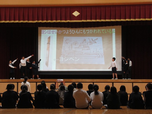 5年生は、フローティングスクールで学んだことを劇で発表しました。1~4年生はフローティングスクールでどのようなことをするのかがイメージできたのではと思います。6年生は、自分たちの時のことを思い出したのではと思います。