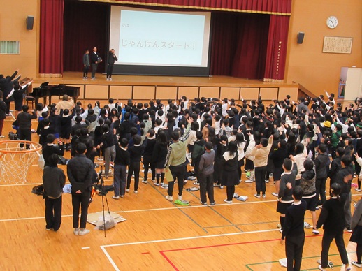 集会の最後は、集会委員によるじゃんけん大会です。玉津小のじゃんけん王を決定しました。みんなの気合がすごかったです。