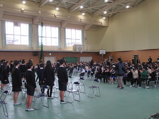 今日は、全校で卒業式練習を行いました。