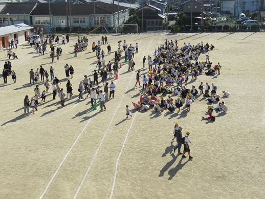 運動場に児童と迎えに来た方が学級ごとにそれぞれ並び、あらかじめ登録いただいている方かどうかを担任が確認します。