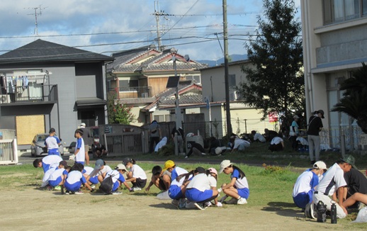 草刈りや窓ふき、体育館のワックスがけ、トイレ掃除などに取り組んでもらってとても学校がきれいになりました。
