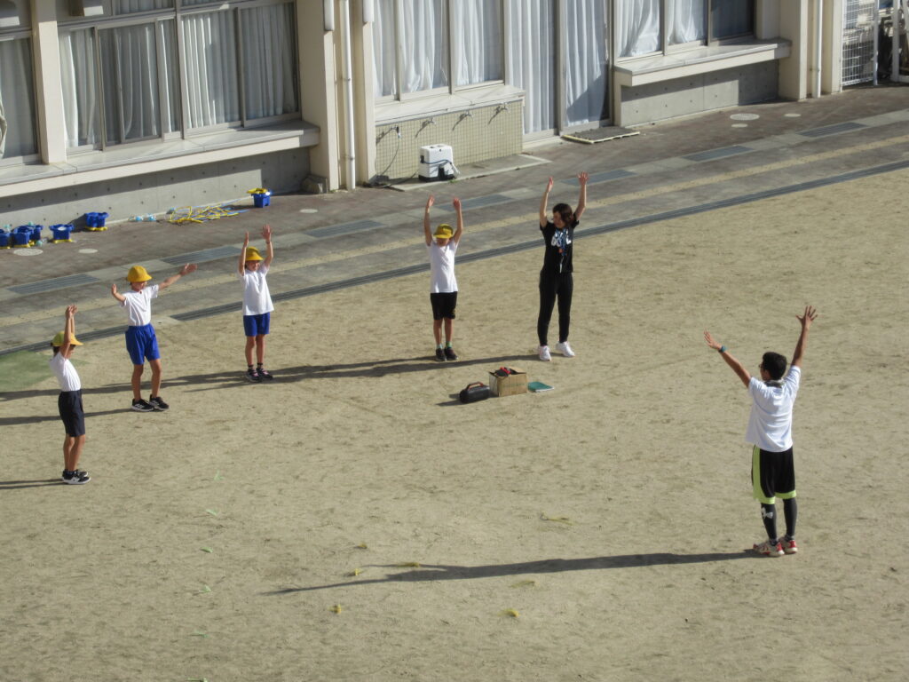 スポーツ委員会は、ラジオ体操の練習をしたり、出発合図の練習をしたりしていました。