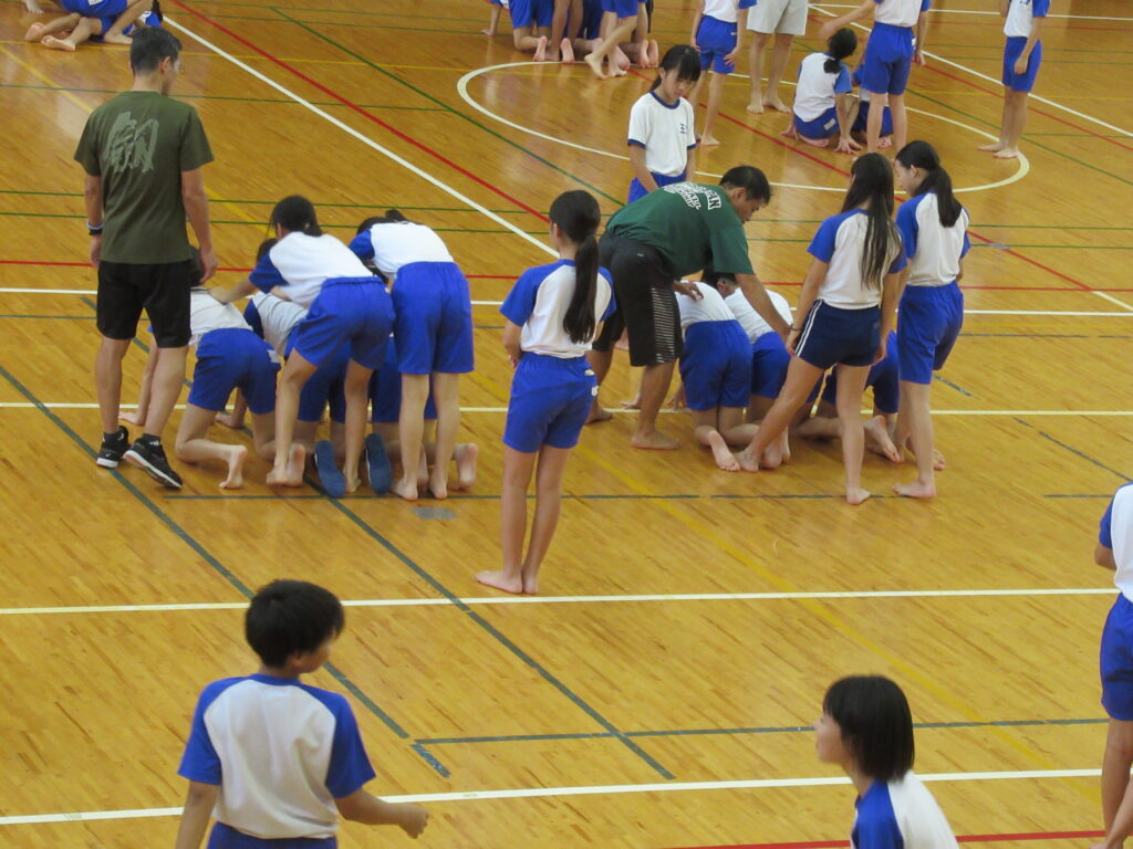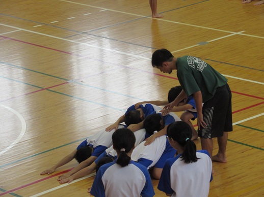 ピラミッドは、順番に先生方がついて、技を完成させていました。周りで見守るみんなの目もとても真剣でした。
