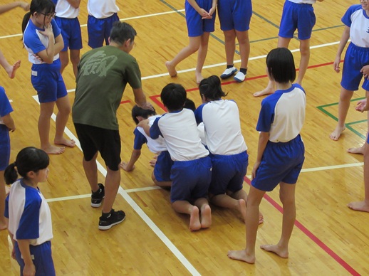 5・6年生の組体操の練習では、3人技や6人技の練習が始まりました。