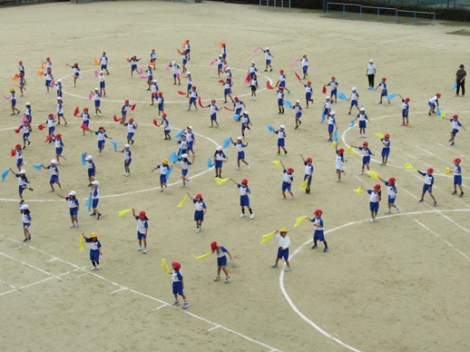 クラスによってスカーフの色が異なります。元気いっぱいな動きに、スカーフが加わるとさらに華やかになりました。