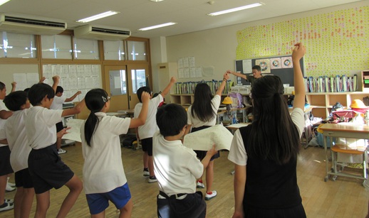 運動会のスローガンは、「一人一人が主人公 みんなで輝け運動会」です。みんなにスポットライトがあたるすてきな運動会にしましょう。