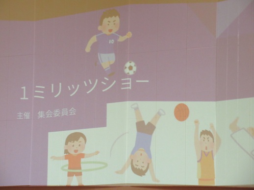 1ミリッツショーは、集会委員会による企画で、昼休みに体育館で行いました。