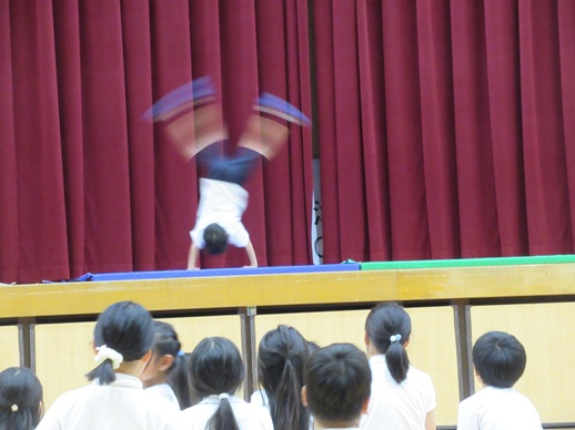 発表の内容は、サッカーや登り棒、バスケットボール、側転など…