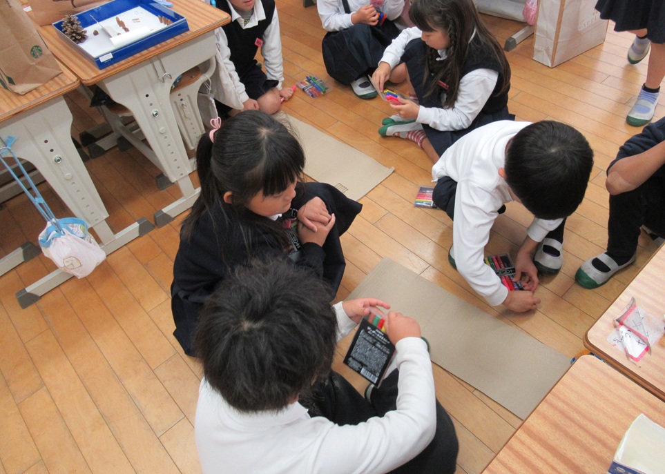 どのクラスもだいたいおもちゃ作りは終わった様子で、次の準備に入っていました。