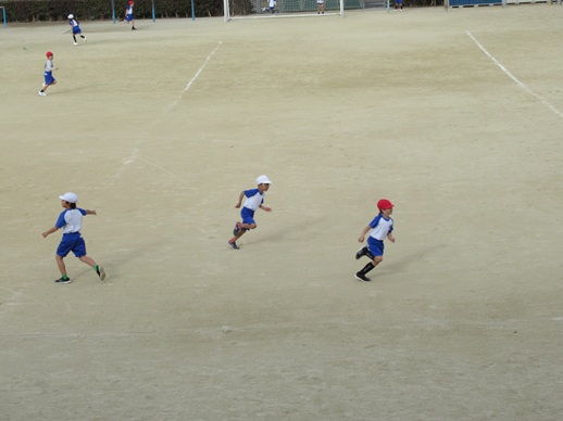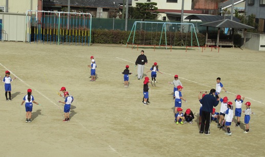寒い中でも、体育の時間にしっかり体を動かしています。