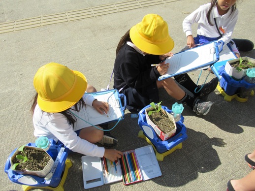 今日は、観察をしていたのですが、子葉と本葉の形の違いや手触りの違いに気づいていました。