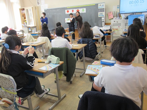 お友だちの I want を予想するなど、楽しく繰り返し表現していました。