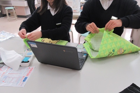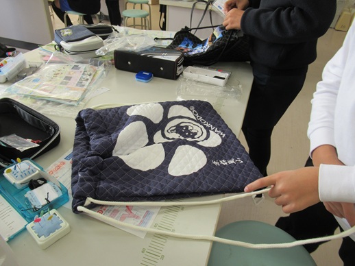 ミシンの扱いに慣れていない子や初めてひも通しをする子などにわかりやすく教えてくださいました。