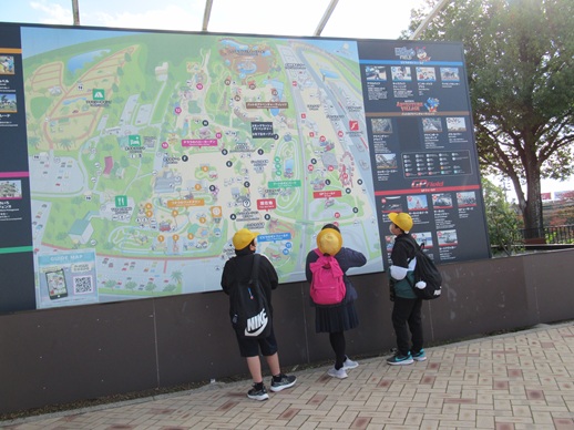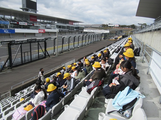 午後からは、鈴鹿サーキットです。昼食をすませたあとは、グループ活動です。3~4人のグループでどこに行くかを相談して行動していました。