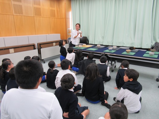 5年生は、芸術体験教室で「抹茶椀づくり」に挑戦します。今日は第1回目です。