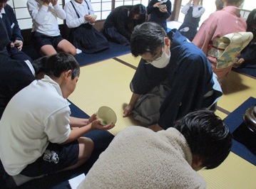 諏訪家屋敷では、お点前を拝見して、お茶とお菓子をいただきました。