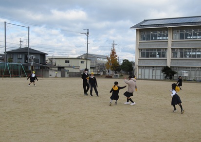 鬼ごっこやかごめかごめなど6年生とやるからとても1年生は楽しそうでした。